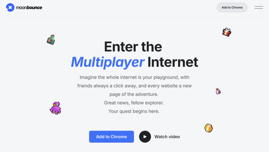 Moonbounce is a Chrome extension that turns browsing the internet into a social, where you can see and interact with other people in real time.